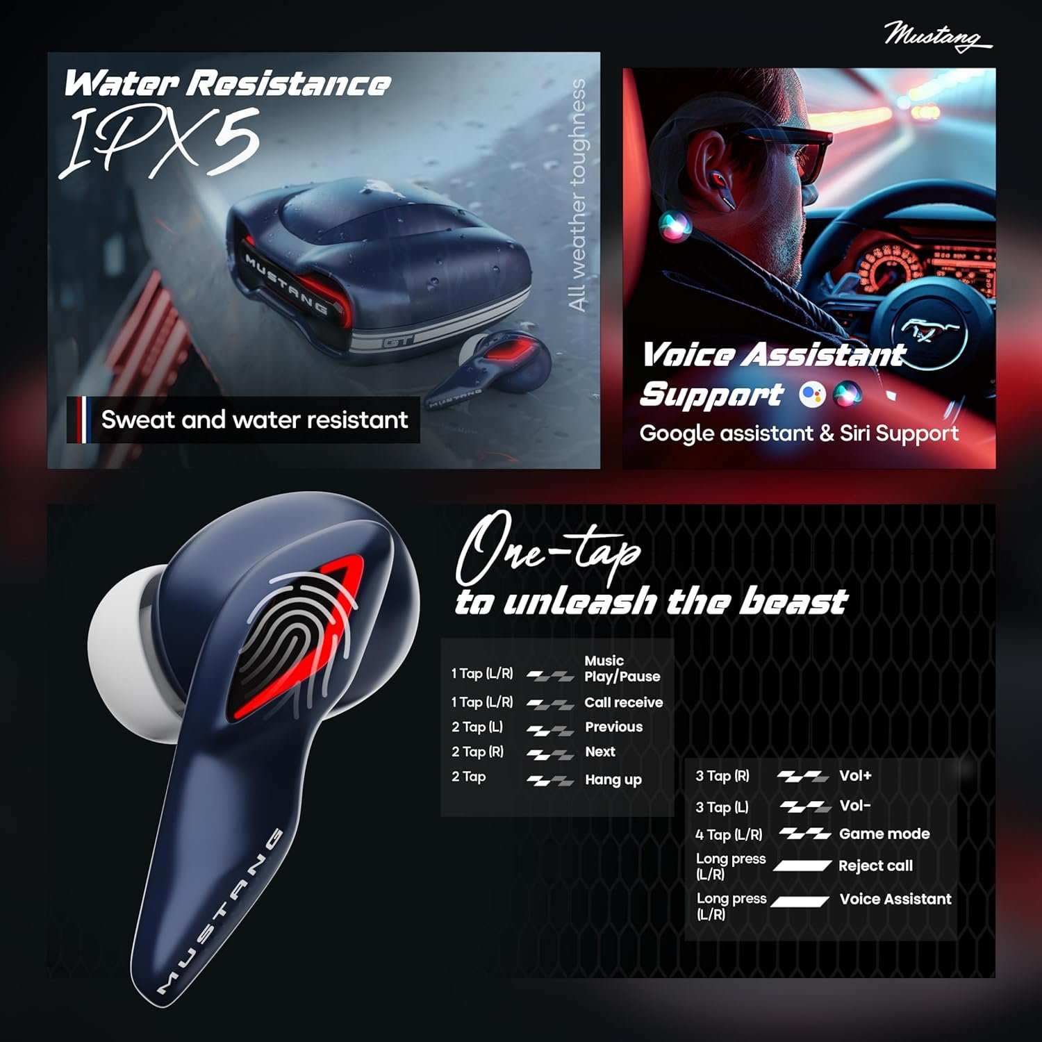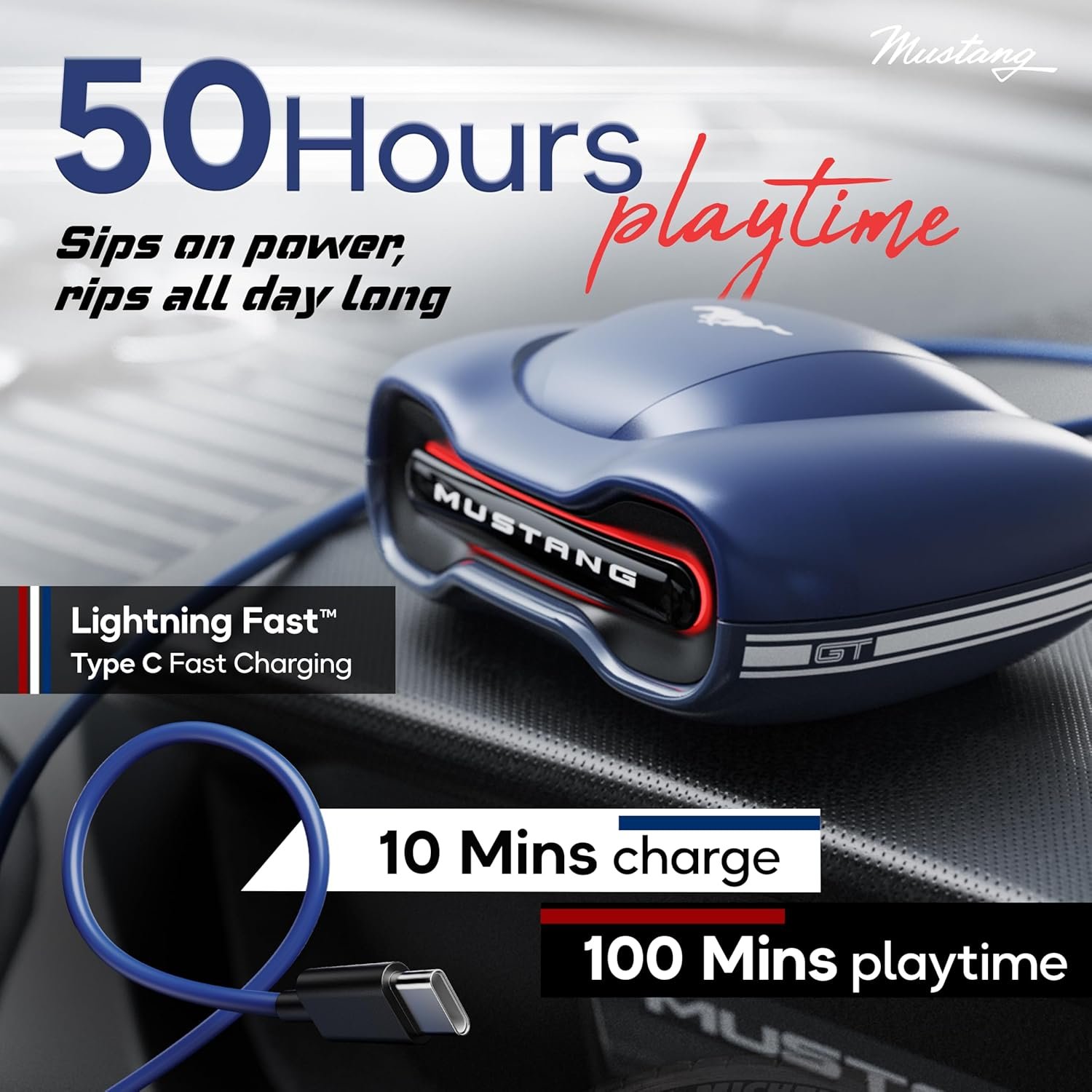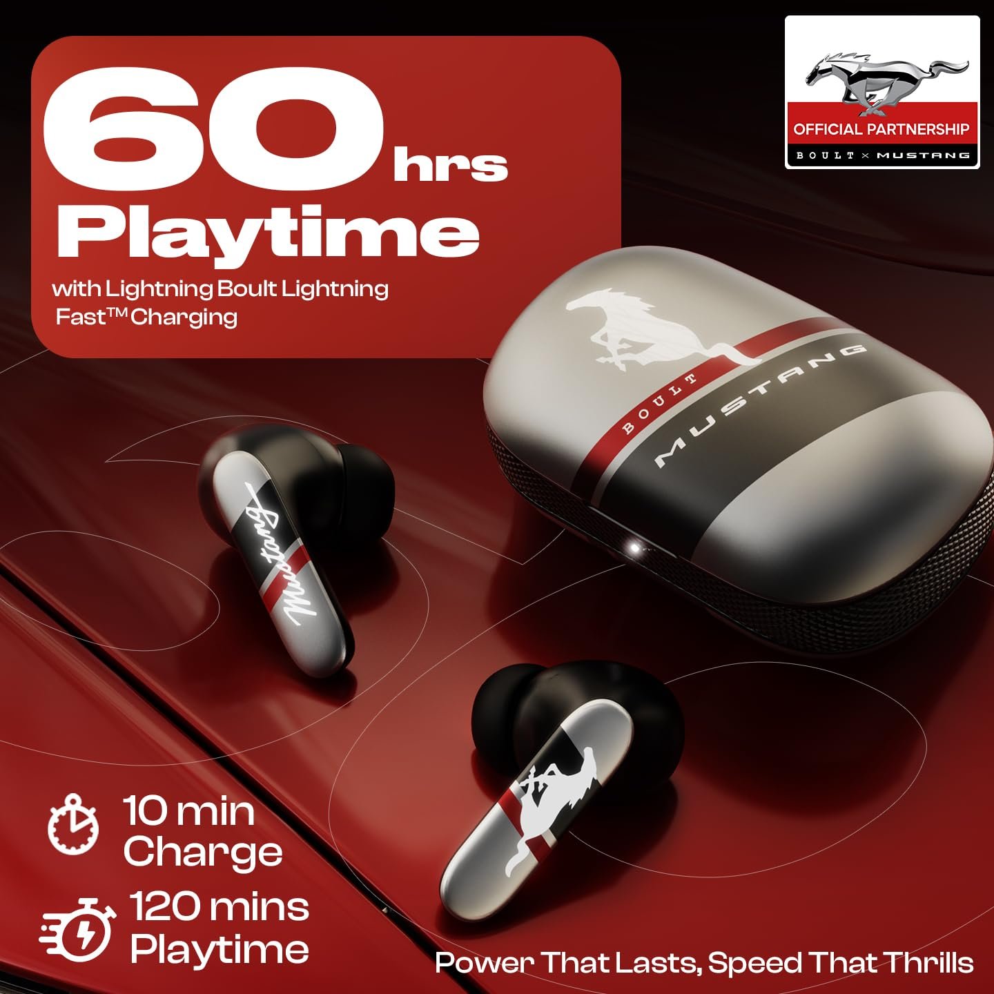 | Special Features | ‎13mm Bass Drivers, 45ms Low Latency Gaming, 50H Playtime, Bluetooth 5.4, Built in App Support, Fast Charging, GOBOULT X Mustang. World Class Design | Advanced Tech | Exhilarating Speed, Integrated Equalizer, Lightweight, Quad Mic ENC, Sweatproof, Touch Control, Volume Control |