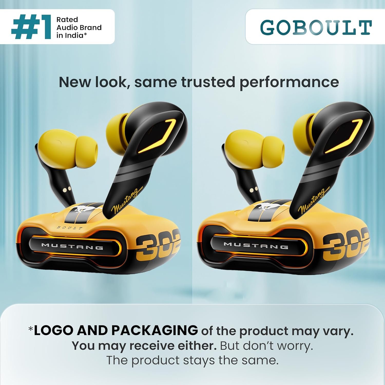 GOBOULT Mustang Torq Wireless in Ear Earbuds with 60H Playtime, App Support, Quad Mic ENC, 45ms Low Latency, 13mm Driver, Breathing LEDs,Touch Controls, Made in India, IPX5, Ear buds Wireless (Yellow)