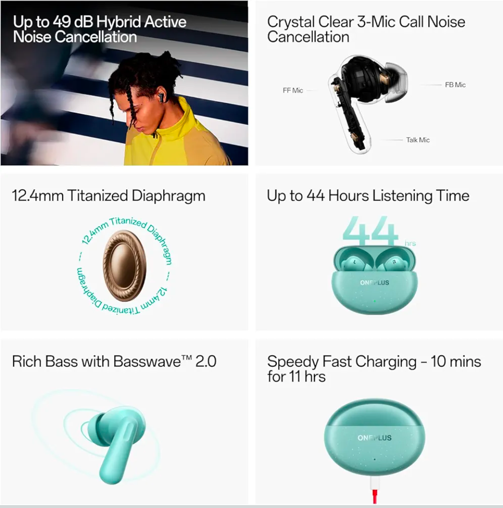OnePlus Nord Buds 3 Pro Truly Wireless Bluetooth in Ear Earbuds with Upto 49Db Active Noise Cancellation, 12.4Mm Dynamic Drivers, 10Mins for 11Hrs Fast Charging with Upto 44Hrs Music Playback[Black]